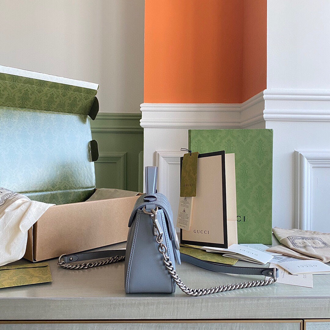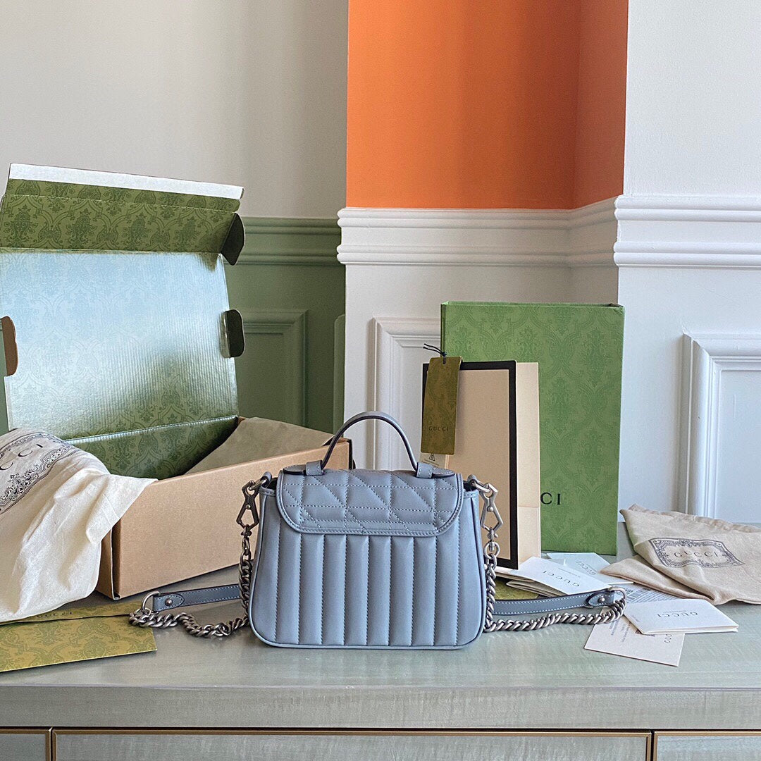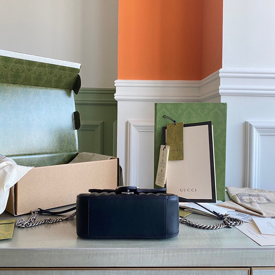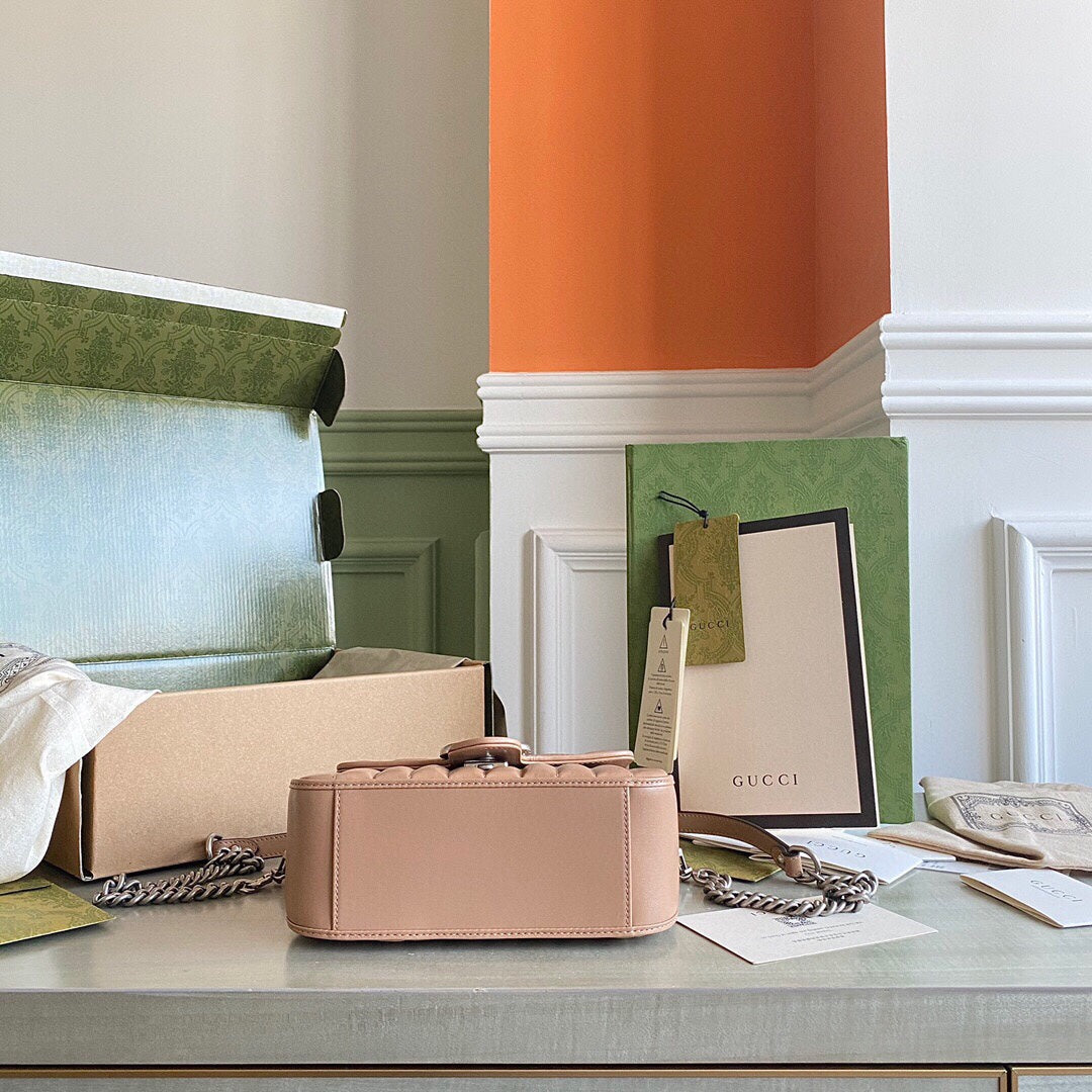 GC Marmont matelassé chevron leather Black / White / Dusty Pink / Gray Blue