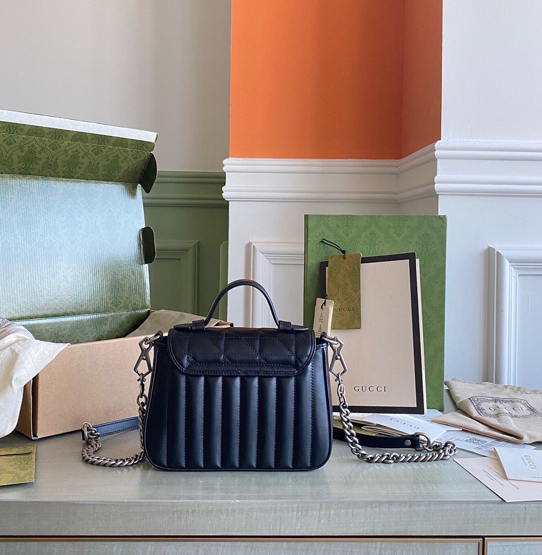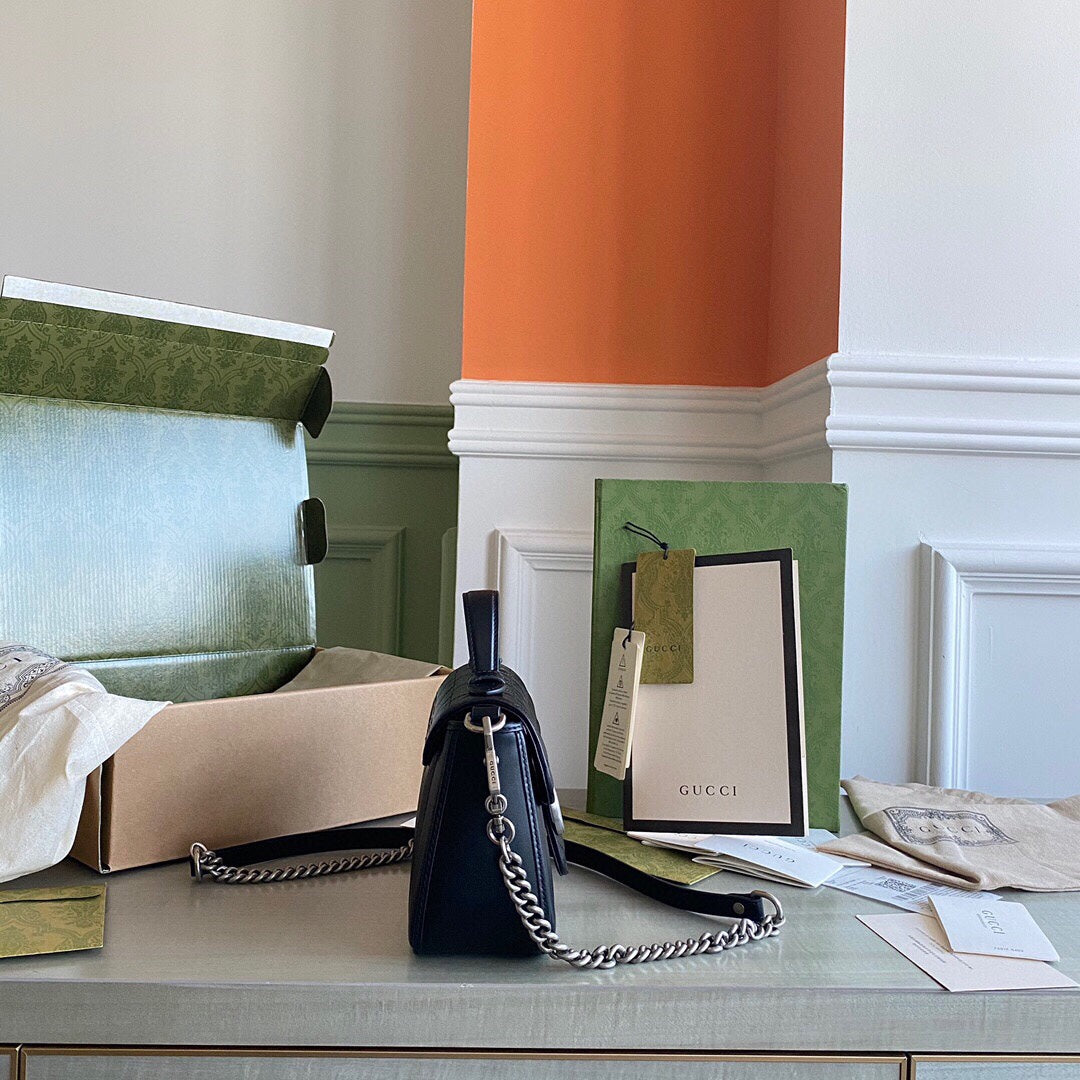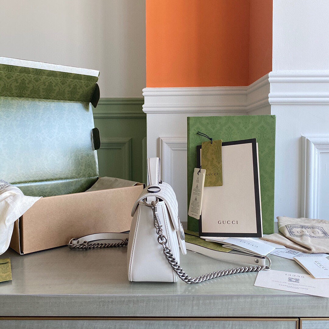 GC Marmont matelassé chevron leather Black / White / Dusty Pink / Gray Blue